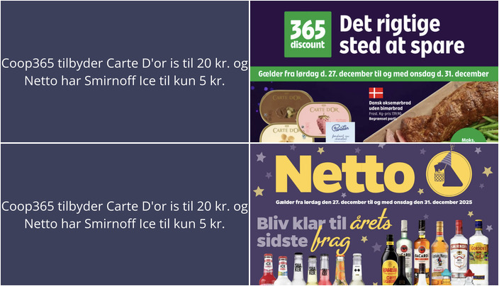 Vi har kigget på denne uges tilbudsaviser for dagligvarebutikker i Ålsgårde og fundet nogle fantastiske tilbud. Her er et udpluk af de bedste tilbud fra Coop365 og Netto.